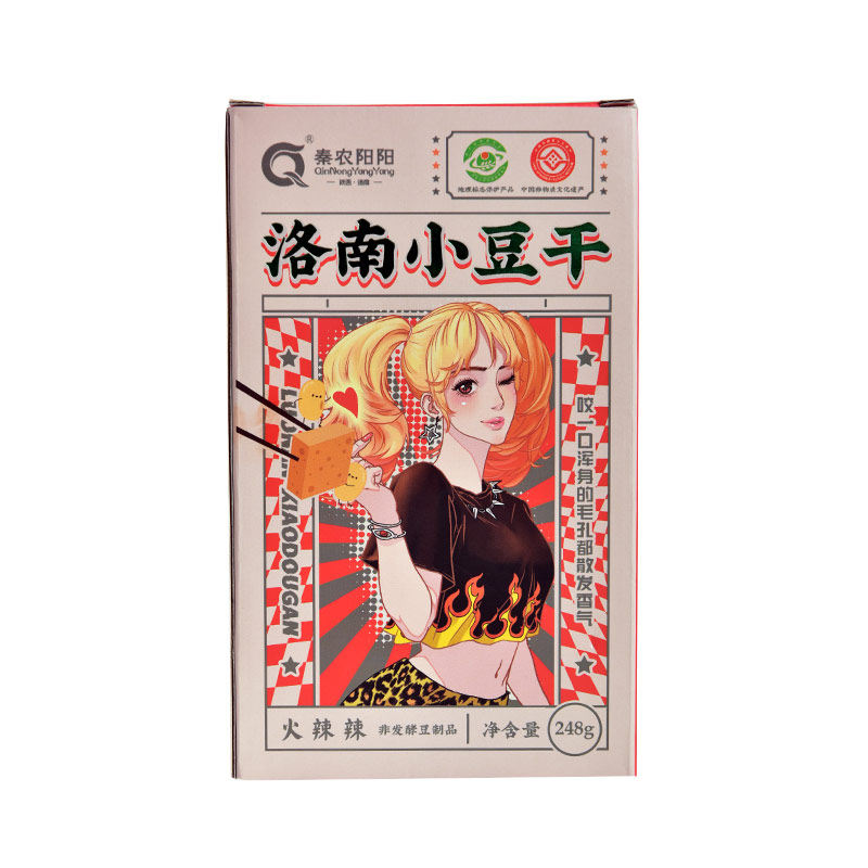 秦农阳阳 吃货麻辣香菇豆干网红小零食香辣豆腐干辣条盒装热门设计联盟服务商