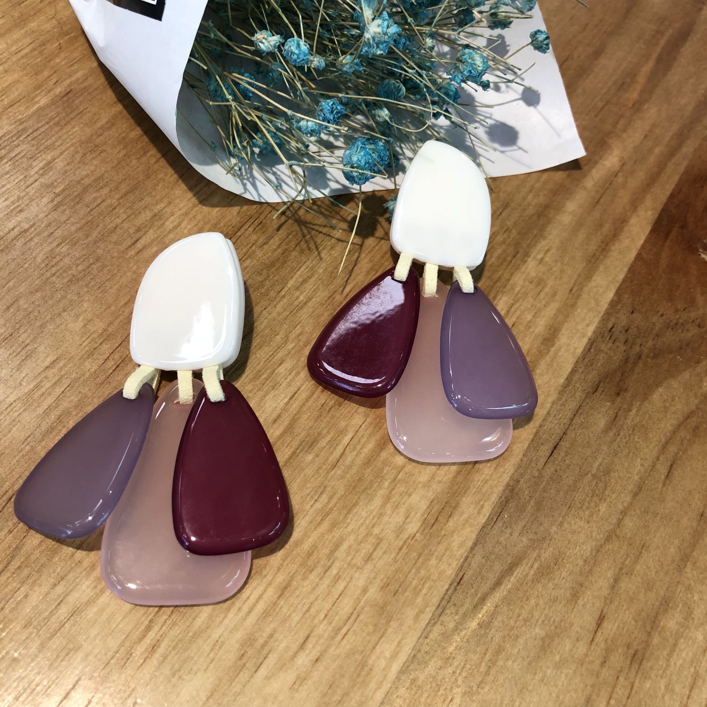 MGSHOPTIME韩国设计师时尚个性撞色三角形花瓣形亚克力吊坠耳环热门设计联盟服务商