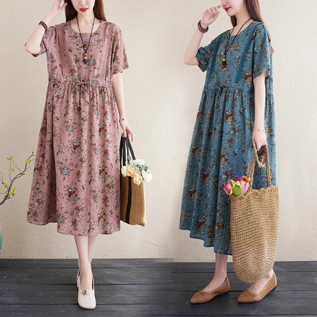 棉麻碎花拼接连衣裙女夏季2021新款高端小众设计感气质减龄a字裙热门设计联盟服务商