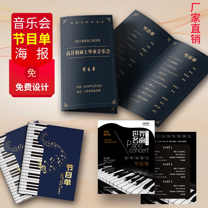 钢琴汇报演出晚会海报条横幅音乐会毕业节目单定制作设计打印刷。热门设计联盟服务商