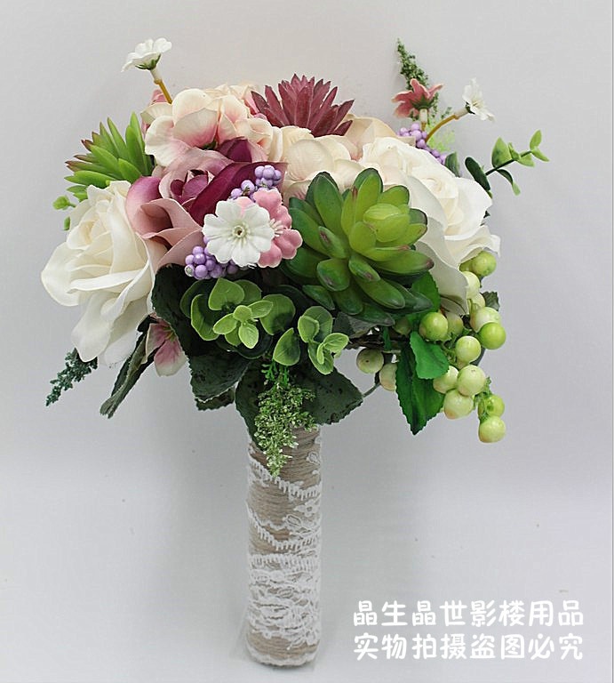 新品新娘手捧花婚纱影楼拍摄道具森系手捧花多肉手捧花摄影拍照花热门设计联盟服务商